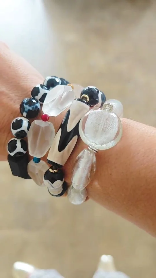 Transparency, texture, and a touch of silver. 🌿✨ The perfect boho stack.